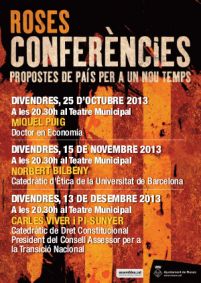El cicle de conferències d'aquesta tardor s'ha dividit en dos blocs temàtics, un que porta per títol “Roses, un poble amb molta història”, que prosseguirà els propers 7 de novembre i 5 de desembre amb el historiadors Miquel Crusafont i Arnald Plujà, respectivament. Per la seva banda, l'apartat “Propostes de país per a un nou temps”, comptarà amb el catedràtic d'ètica Norbert Bilbeny (15 de novembre) i, tancant el cicle el 13 de desembre, amb el catedràtic de Dret Constitucional i president del Consell Assessor per a la Transició Nacional, Carles Viver i Pi-Sunyer.