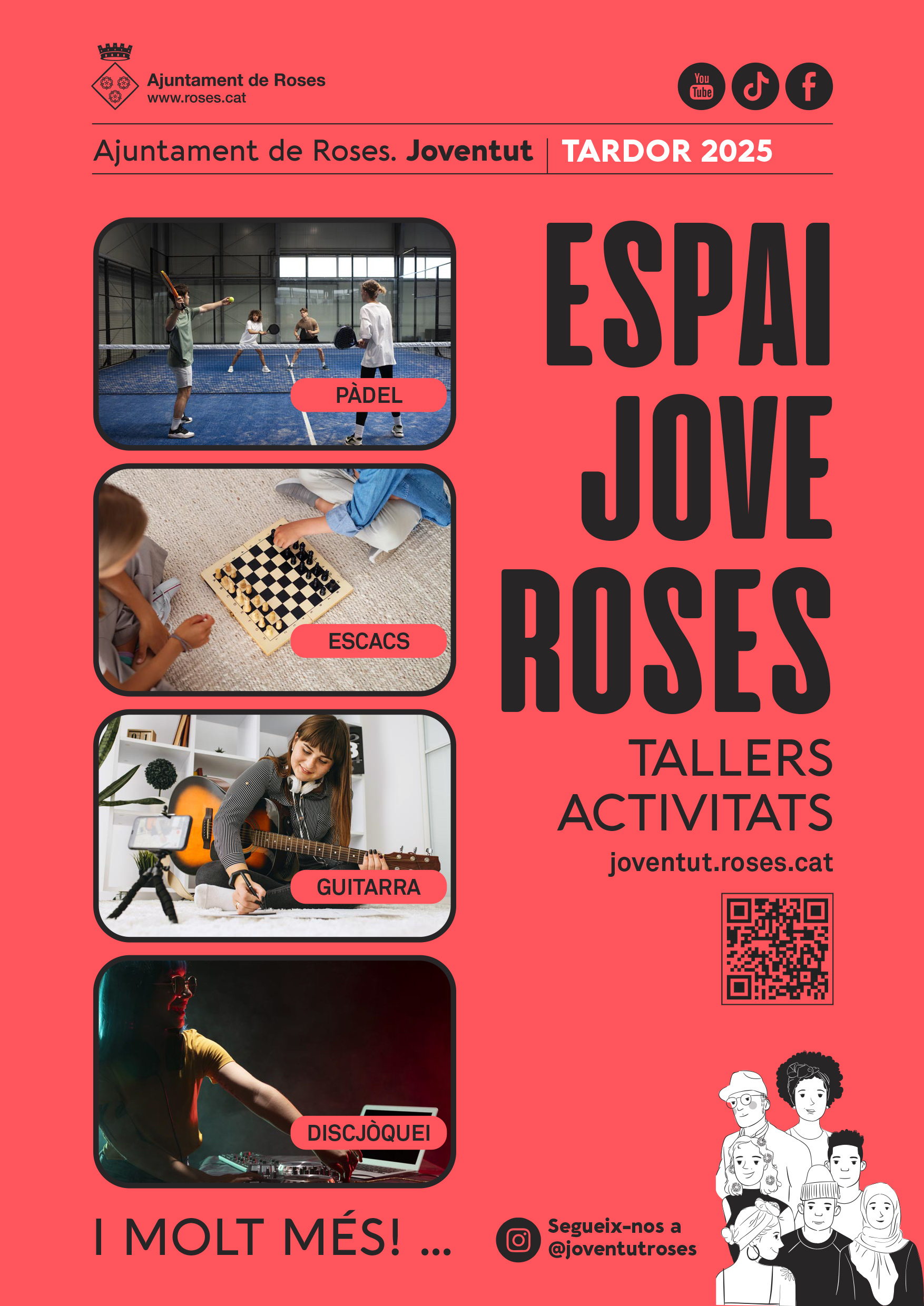 Per a més informació, podeu consultar la web de Joventut Roses https://joventut.roses.cat, l’Instagram @joventutroses, o contactar amb el Departament de Joventut de l’Ajuntament de Roses.