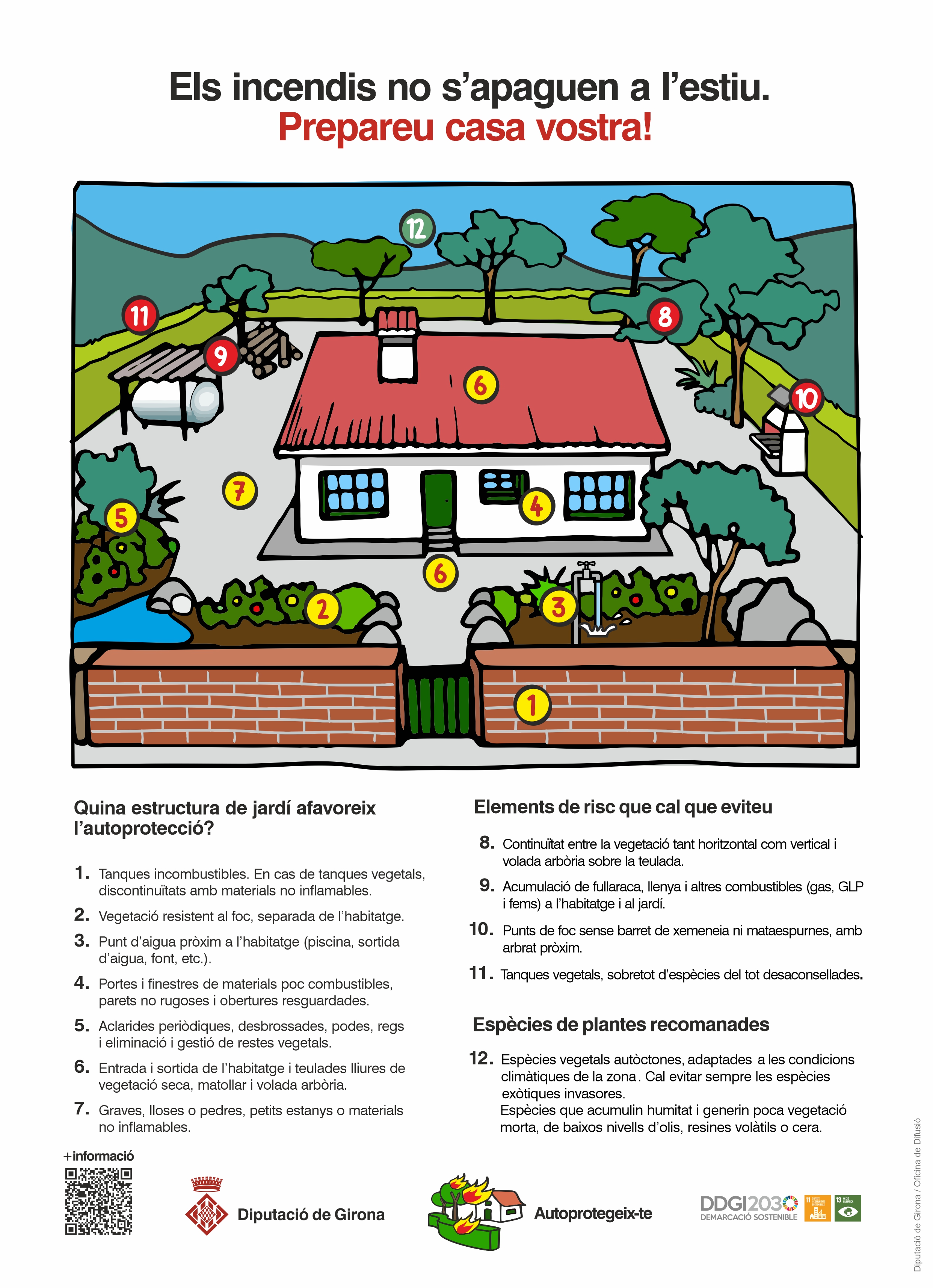- Entrada i sortida de l'habitatge i teulades lliures de vegetació seca, matollar i volada arbòria.