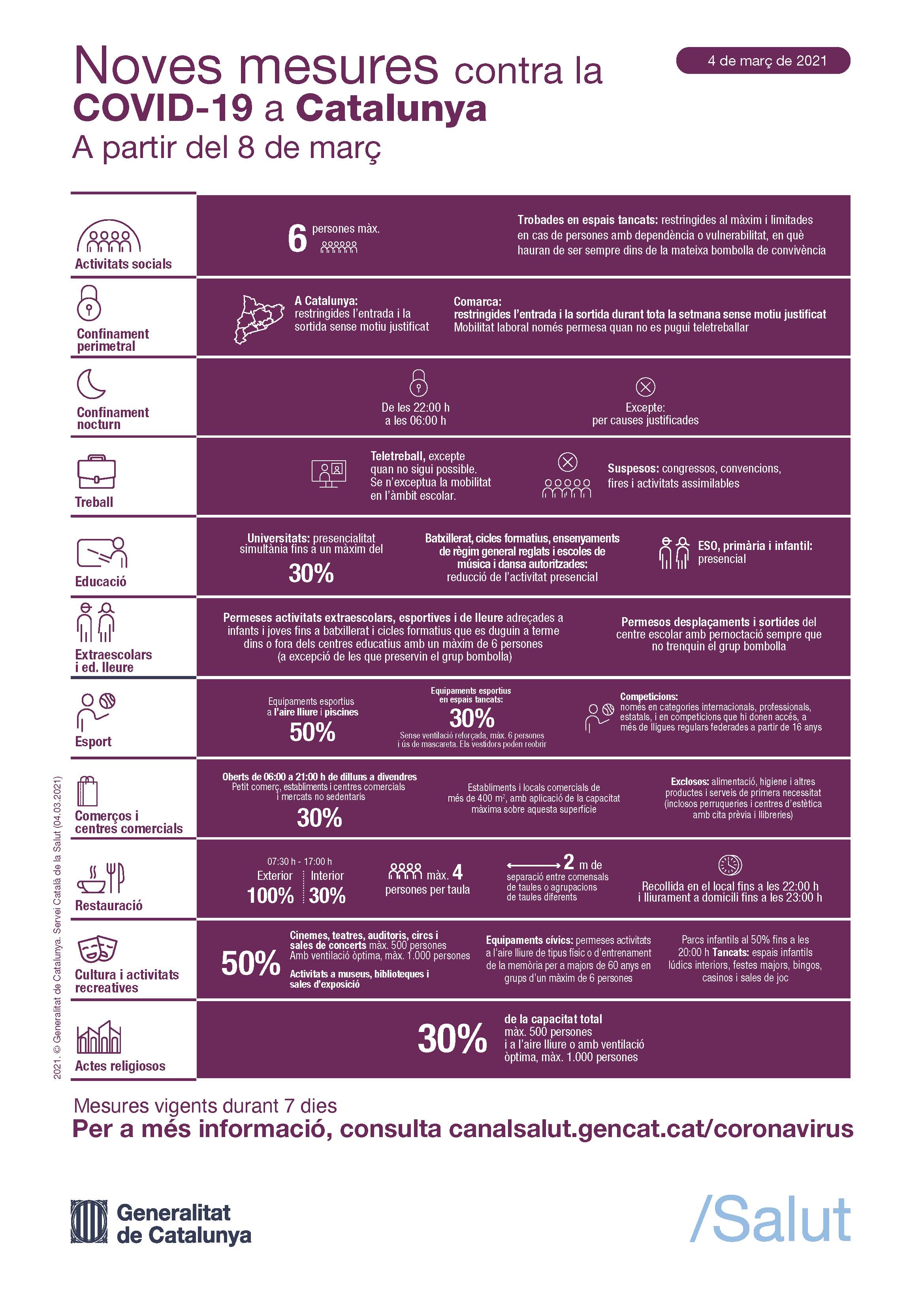 Mesures per a la contenció de la COVID-19 aplicables a partir del 8 de març a Catalunya