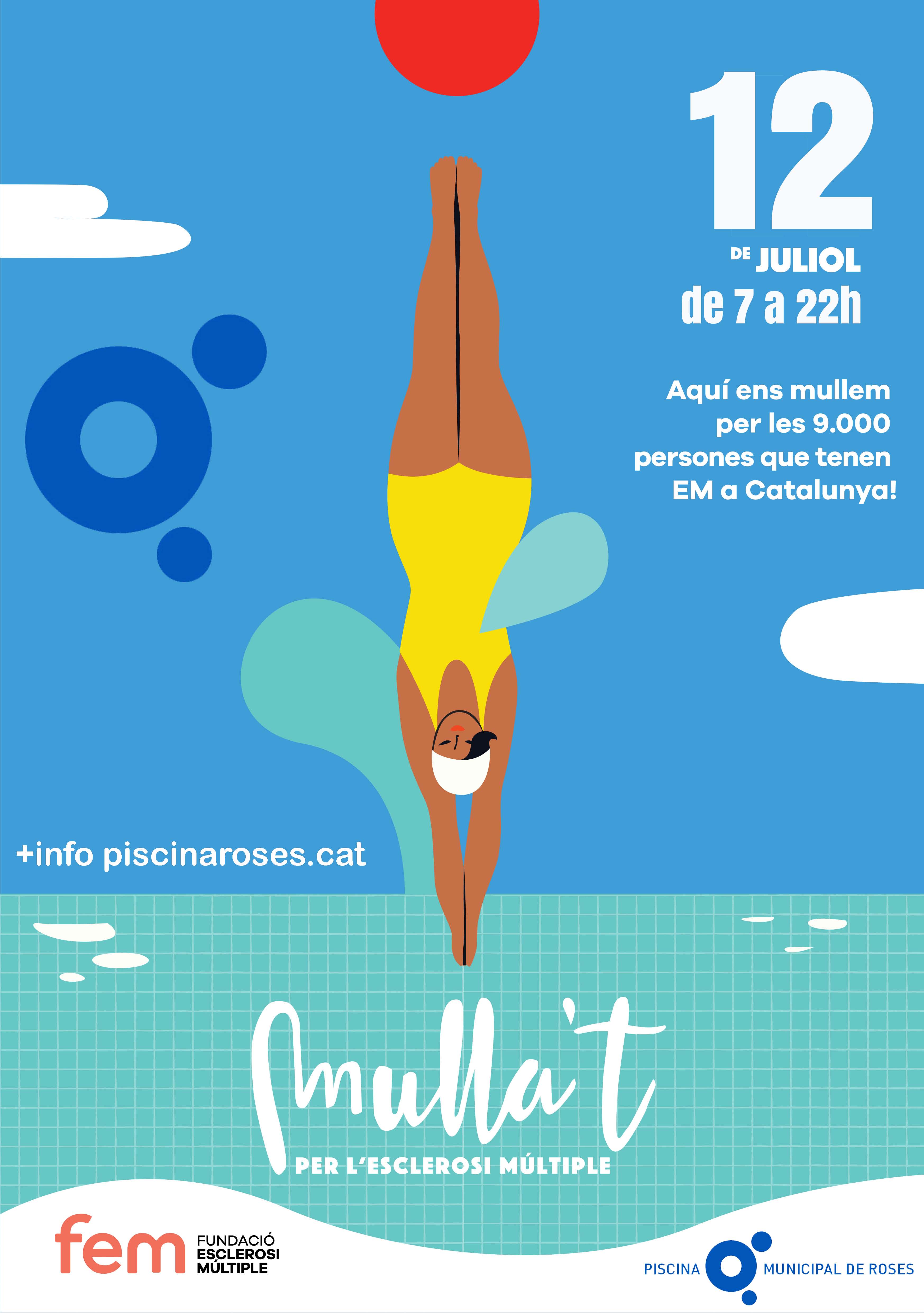 El dilluns dia 12 de juliol, de les 7 a les 22h, la Piscina Municipal de Roses acollirà per quinzè any consecutiu aquesta jornada en benefici de les persones afectades d’EM, una malaltia neurològica del sistema nerviós central.