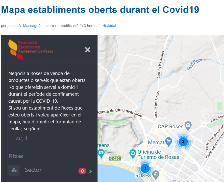 Nova guia d’establiments oberts i/o amb servei a domicili de Roses