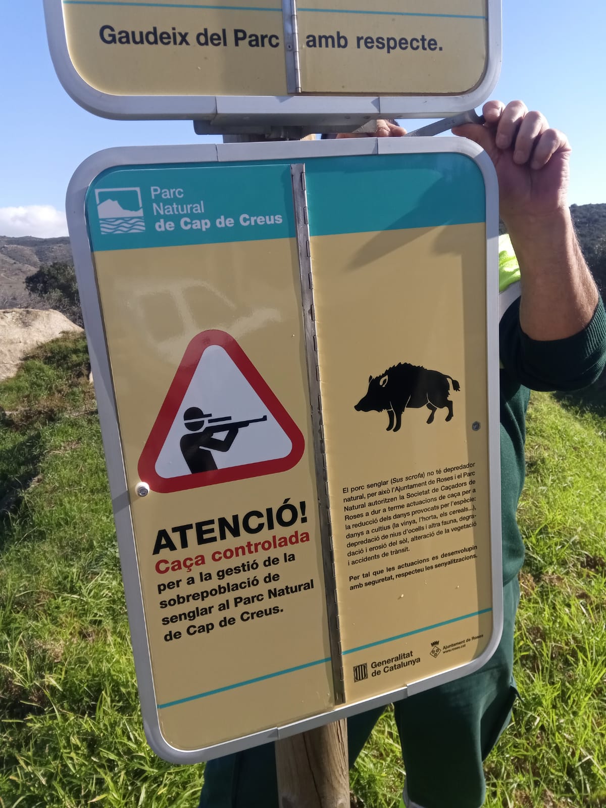 Nova senyalètica informativa sobre el control poblacional del porc senglar a Roses