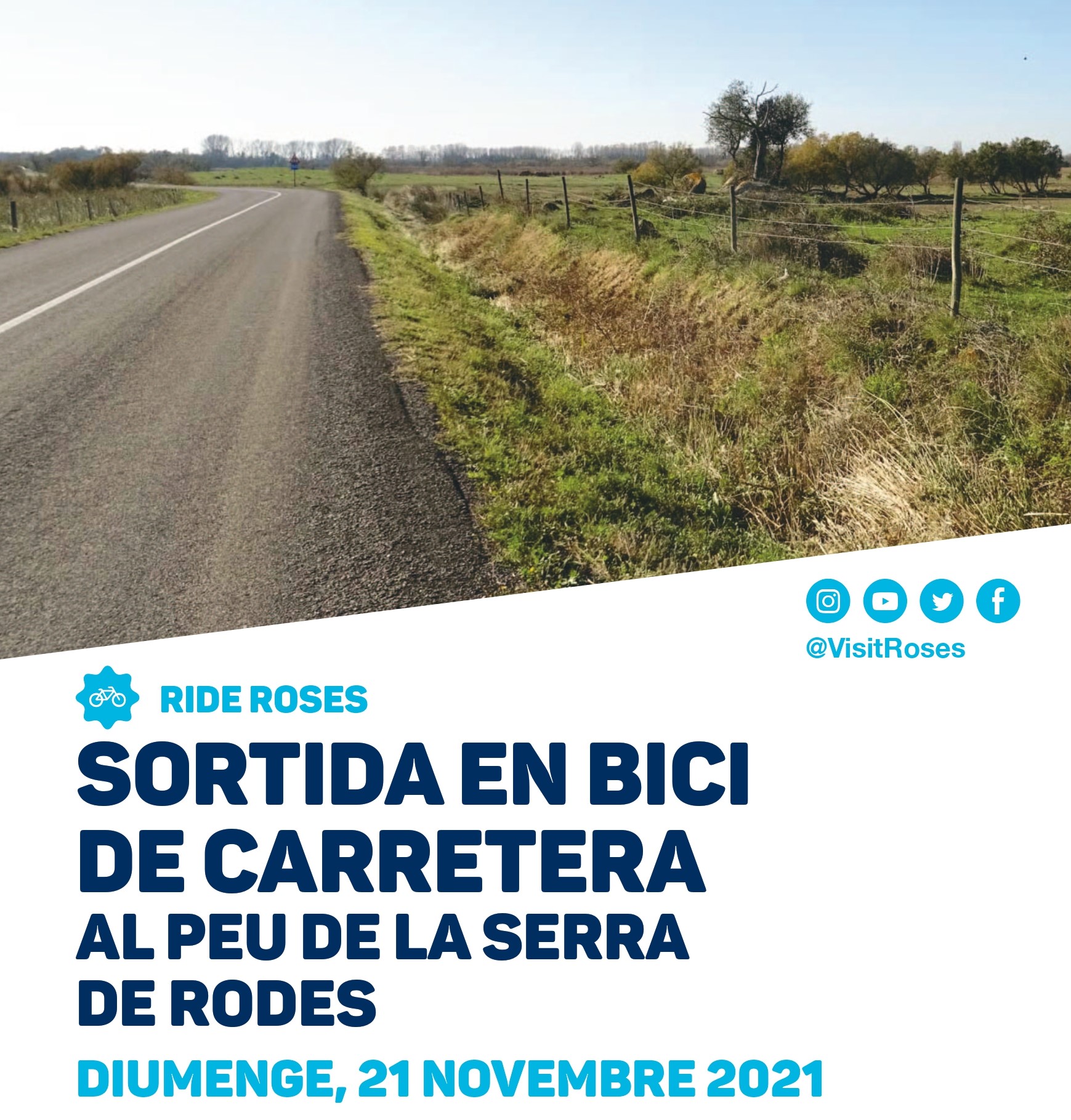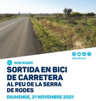 Per la seva banda, el recorregut de diumenge 21 de novembre del programa Ride Roses, s’ha concebut com una sortida en bicicleta de carretera des de Roses, amb servei de guia, per un fàcil tram al peu de la serra de Rodes. La durada prevista és de 4 hores i es recorrerà una distància de 35 km, amb un desnivell de 145 m i una dificultat baixa. La sortida tindrà lloc a les 9 h des de la plaça Catalunya. Aquesta activitat és gratuïta.