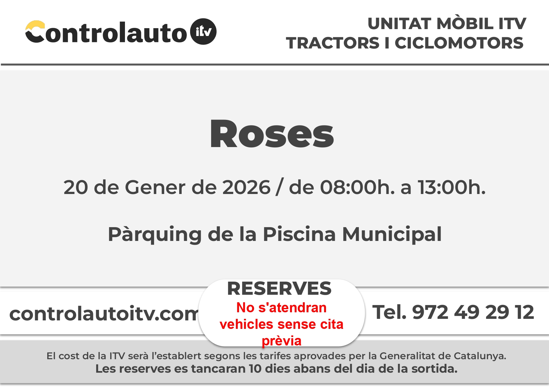 Obertes les cites prèvies de la Unitat Mòbil d’ITV, que es desplaçarà a Roses el 20 de gener