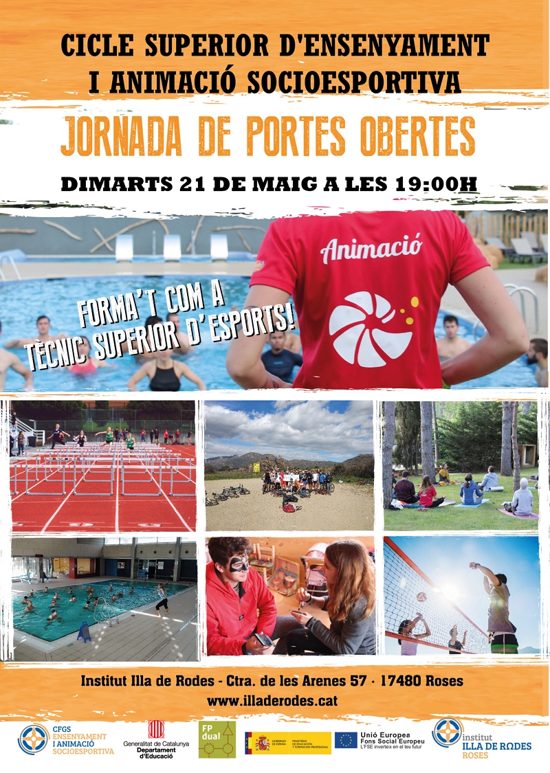 Dimarts 21 de maig, a les 19 hores, l'Institut Illa de Rodes ofereix una Jornada de Portes Obertes per donar a conèixer el Cicle Formatiu de Grau Superior d’Ensenyament i Animació Socioesportiva que s'imparteix en el centre, el qual permet la formació en tècnic superior d’esports. L’accés és lliure.