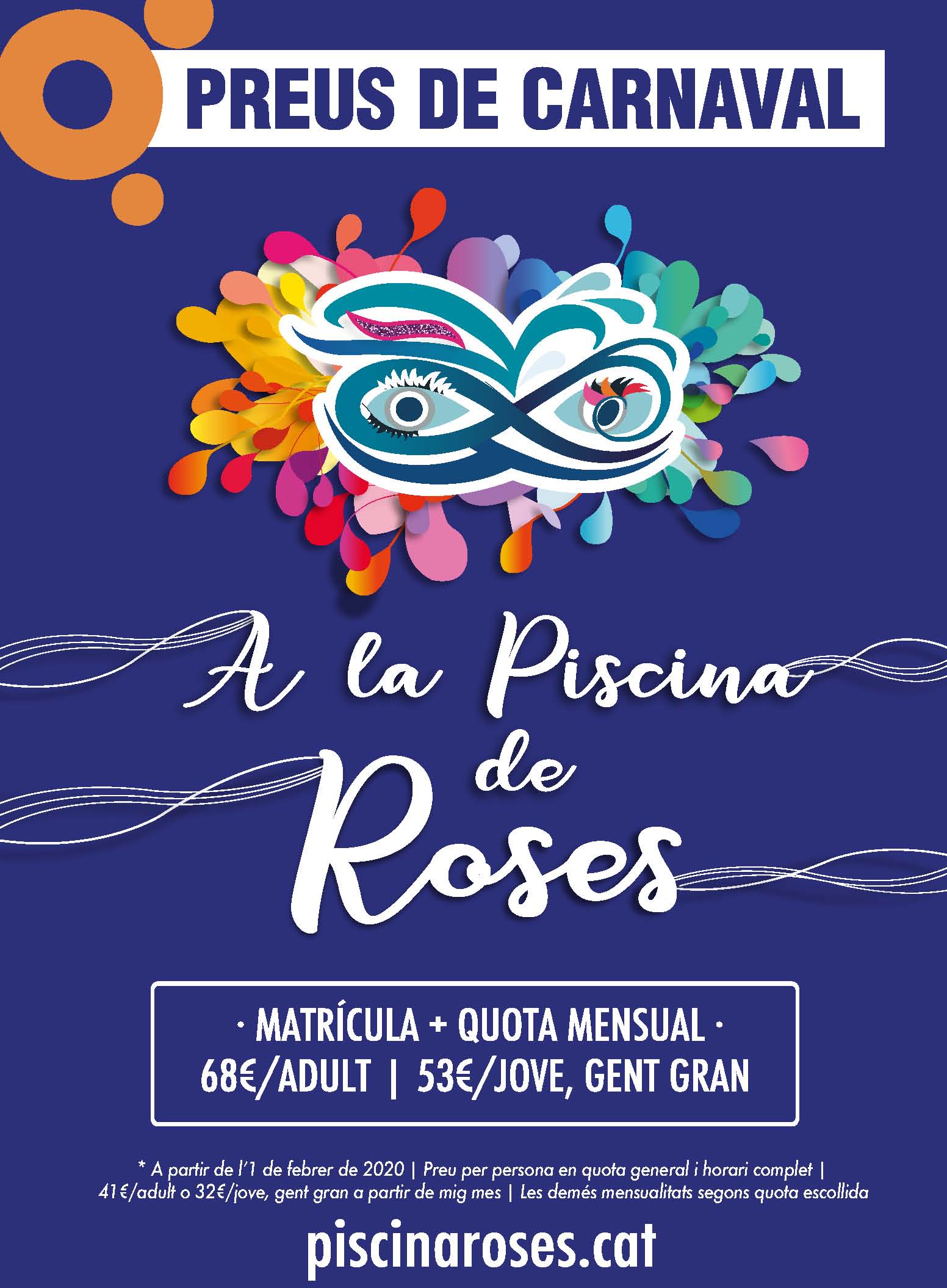 La Piscina s’afegeix a la festa i a l’alegria del Carnaval rosinc i ofereix unes condicions immillorables per posar-se en forma, cuidar-se, fer salut, divertir-se, relaxar-se... Totes les noves altes que es realitzin durant la promoció obtindran aquestes condicions econòmiques (o una tarifa de 41€/adult i 32 €/jove o gent gran en cas que l’abonament es realitzi a partir de mig mes), així com el servei d’assessorament esportiu gratuït. Aquest servei inclou l’APP Entrena’t que permet disposar del programa d’entrenament digital al mòbil, juntament amb el control i seguiment de l’entrenament a través dels pesatges amb la bàscula d’impedància que determina l’evolució del pes, el tant per cent de massa muscular, el tant per cent de massa grassa...
