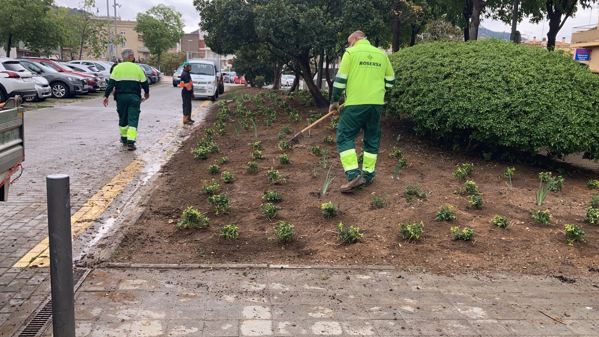 La brigada de jardinera de l'empresa municipal Rosersa, està realitzant la substitució de la vegetació de la plaça de l'Empordà i de la zona d'aparcament adjacent al Teatre Municipal, per a la millora de la qualitat paisatgística d'aquests espais.