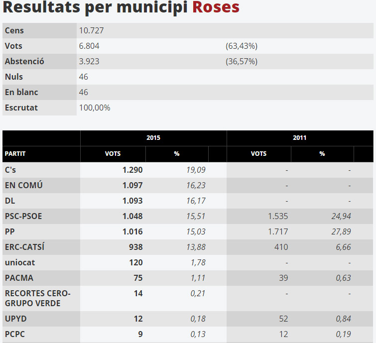 Resultats de les eleccions generals a Roses