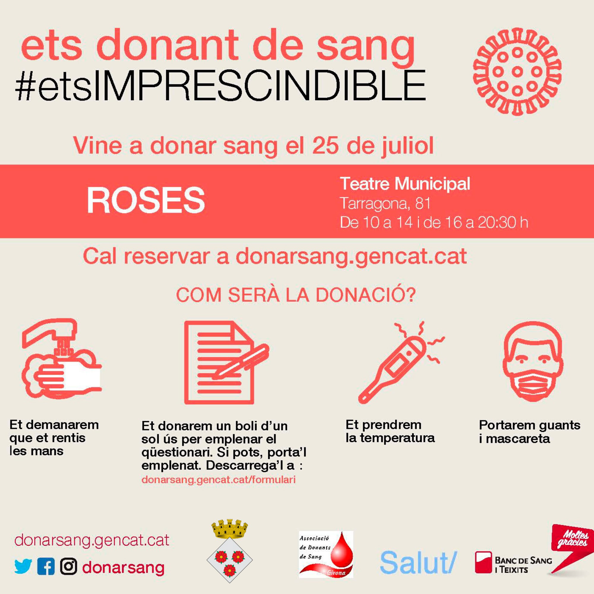 El Banc de Sang calcula que fins a finals d’agost, el hospitals catalans necessitaran 35.000 donacions de sang per atendre tots els malalts i accidentats. Per això, es fa una crida perquè ens apropem als hospitals i a les campanyes de donació organitzades arreu de Catalunya.