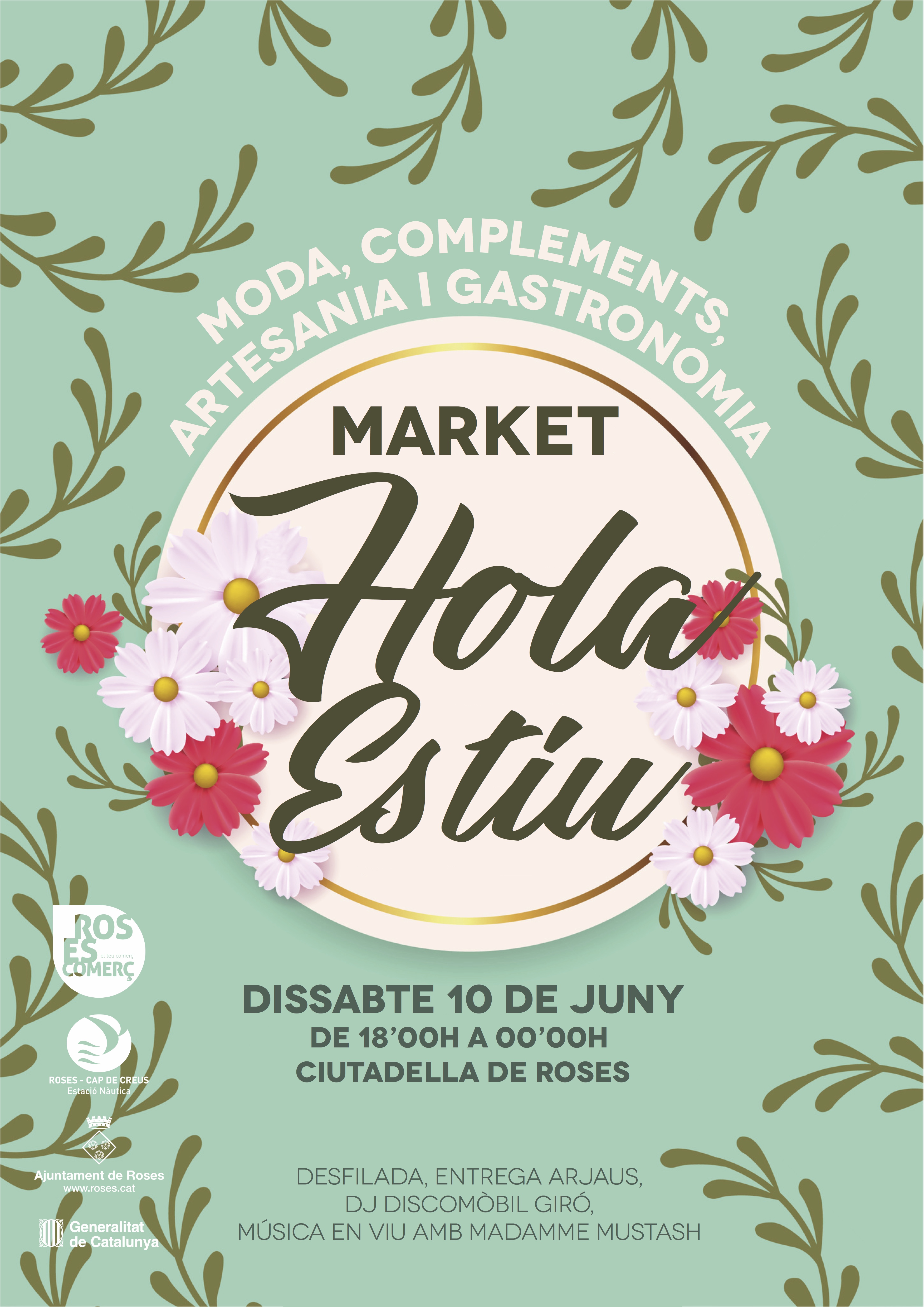 La primera edició del “Market Hola Estiu” es durà a terme el proper 10 de juny a partir de les 18h i fins la mitjanit al davant la Ciutadella de Roses i reunirà una trentena de comerciants que exposaran els seus productes relacionats amb la moda, l’artesania, els complements i la gastronomia. També hi haurà actuacions musicals en directe a càrrec de la cantautora empordanesa Madamme Mustash i el DJ discomòbil Giró. Se celebrarà en paral.lel a la vuitena Festa del Mar que es durà a terme el cap de setmana del 10 i 11 de juny.