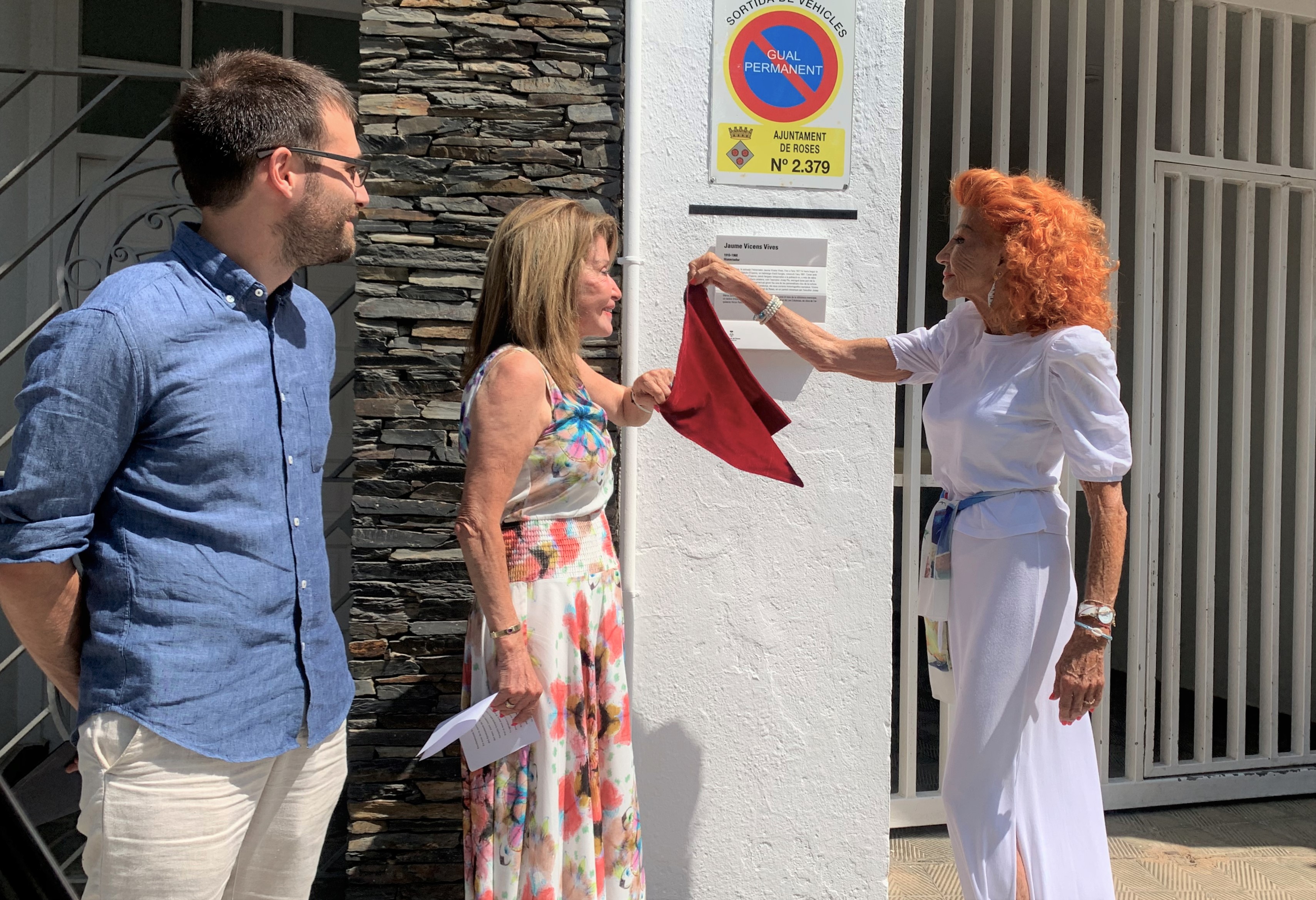 La façana de l’edifici de l’avinguda de Rhode 93 de Roses, emplaçament de la casa pairal de la família Rahola on Jaume Vicens Vives visqué durant llargues temporades des del seu casament amb Roser Rahola d’Espona, llueix des d’avui la placa que visibilitza el vincle de l’historiador amb el municipi. Èric Ibáñez, regidor de Cultura de Roses, ha obert l’acte, que ha comptat amb l’assistència de familiars de l’homenatjat i regidors i regidores del consistori.