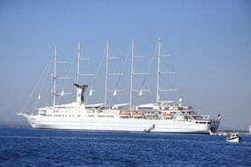 Per altra banda, el veler Sea Cloud II visitarà demà per primer cop a Roses amb 60 passatgers, majoritàriament alemanys, australians i suecs, i 64 tripulants. El creuer que farà la segona escala de la temporada preveu arribar a les 8.00 h procedent de Port Vendres (França) i salpar a les 13.00 h en destinació a Barcelona.