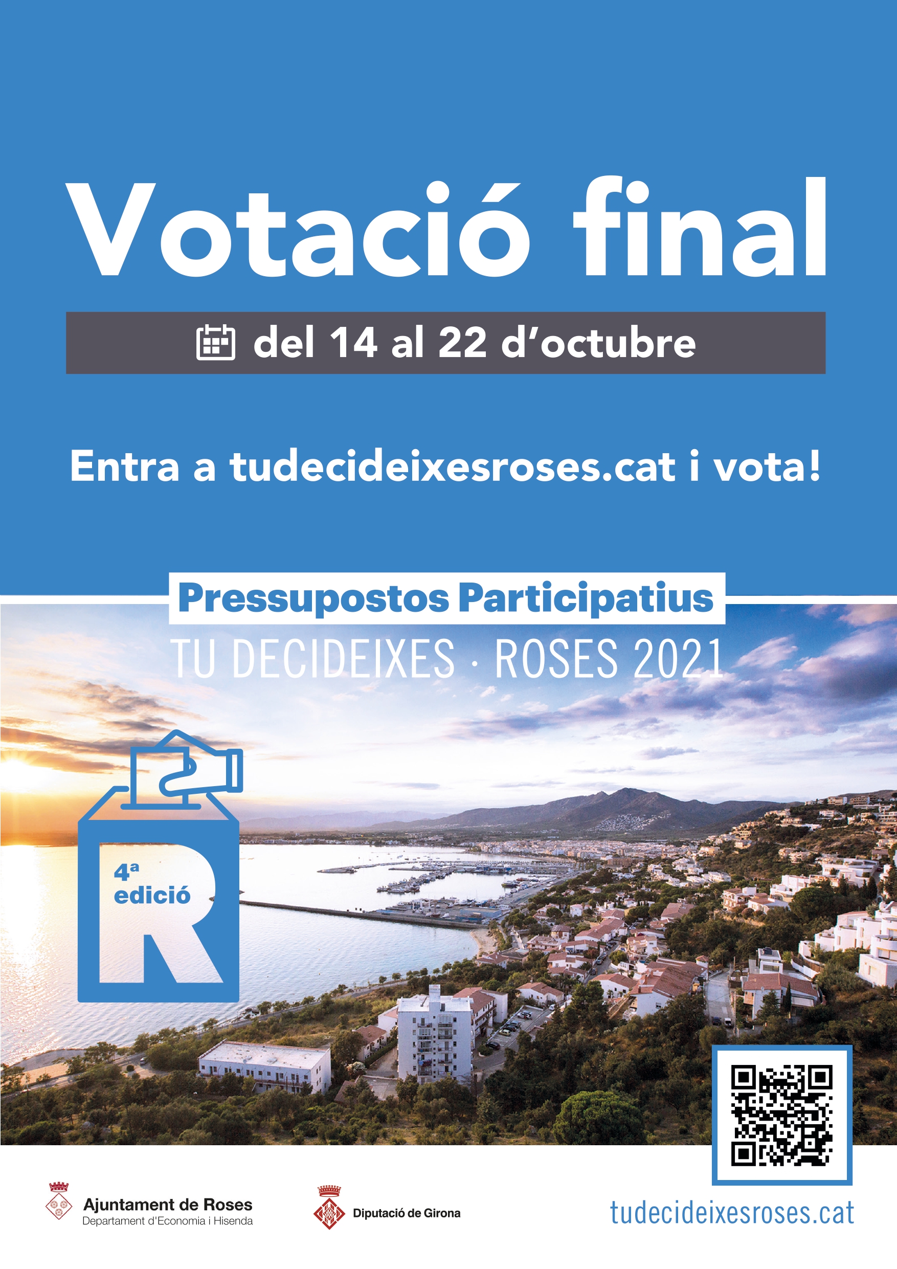 L’Ajuntament sotmet a votació i decisió popular un total d’11 actuacions sorgides de les propostes realitzades per la població i del Fòrum Ciutadà de Priorització, i que han estat validades pels serveis tècnics de l’Ajuntament. Cada ciutadà podrà escollir un màxim de tres propostes entre els 11 projectes finalistes. Totes les persones empadronades a Roses que tinguin 16 anys o més. En el moment de la votació caldrà identificar-se amb el DNI o NIE.