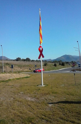 Roses s'adhereix al Dia Mundial de la Lluita contra la Sida posant llaços vermells a les rotondes d'entrada