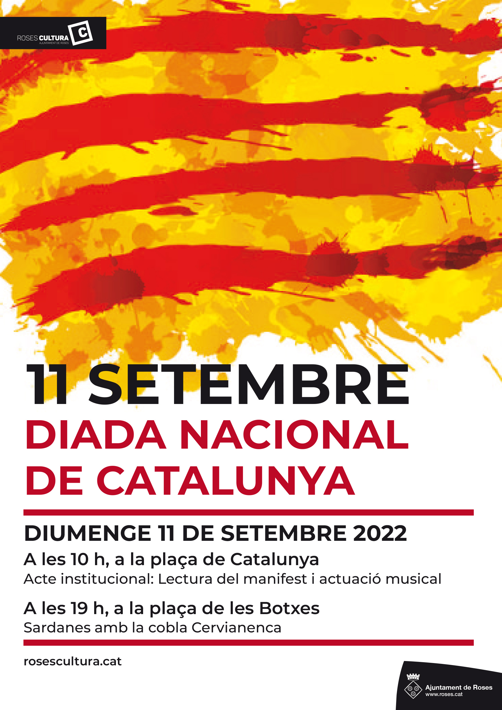 L’Ajuntament de Roses organitza, per segon any consecutiu, una jornada festiva per a commemorar la Diada Nacional de Catalunya. Coincidint amb aquesta cita, el proper diumenge 11 de setembre, tindrà lloc un acte institucional, on els alumnes del Consorci per a la Normalització Lingüística (CPNL) de Roses llegiran “el pregó de la Diada” i l’exalcaldessa de la població, Magda Casamitjana, el manifest institucional.