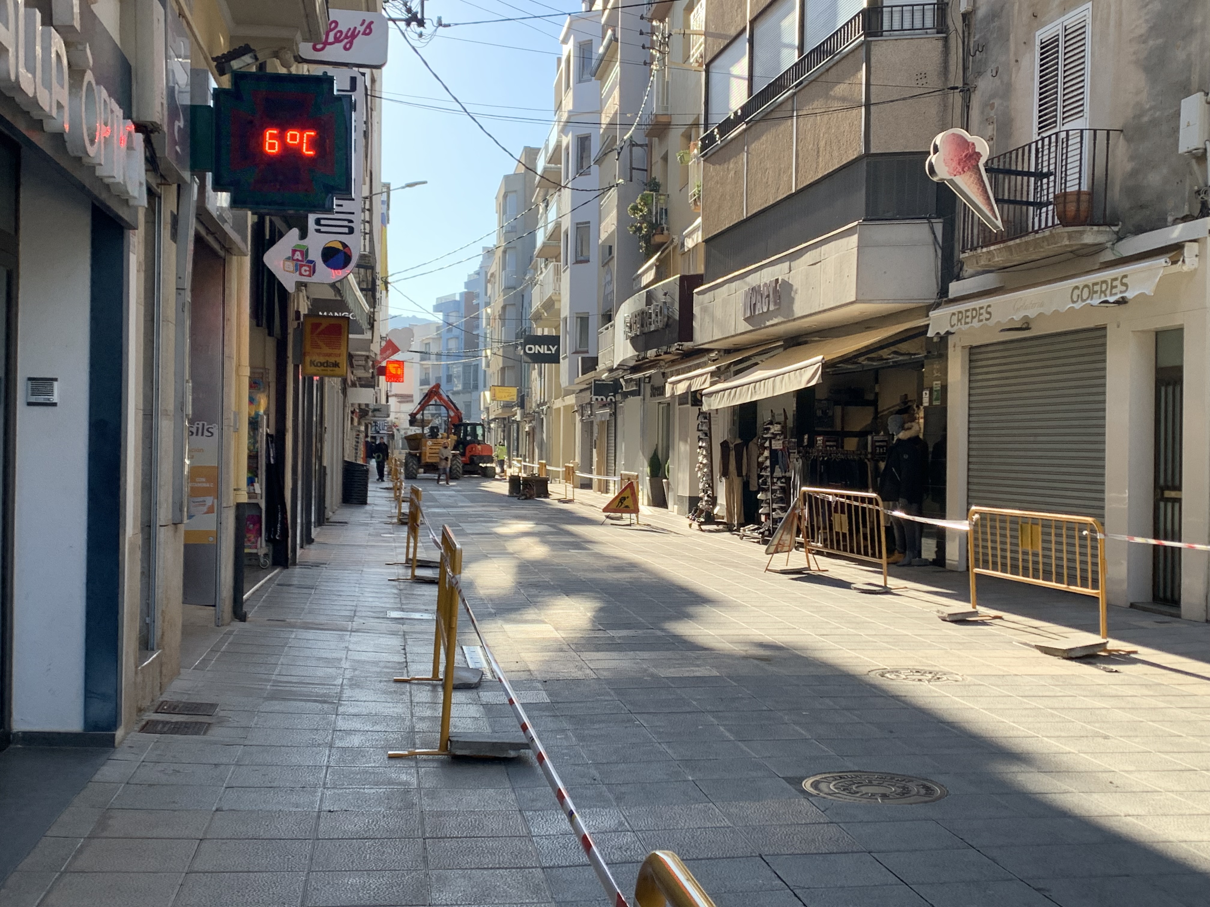 Aquesta setmana s’han iniciat les obres de renovació amb l’enderroc del paviment de la part central on es procedirà al soterrament de serveis i xarxes, fet que permet transitar pel carrer i accedir a comerços i edificis per les dues voreres laterals.