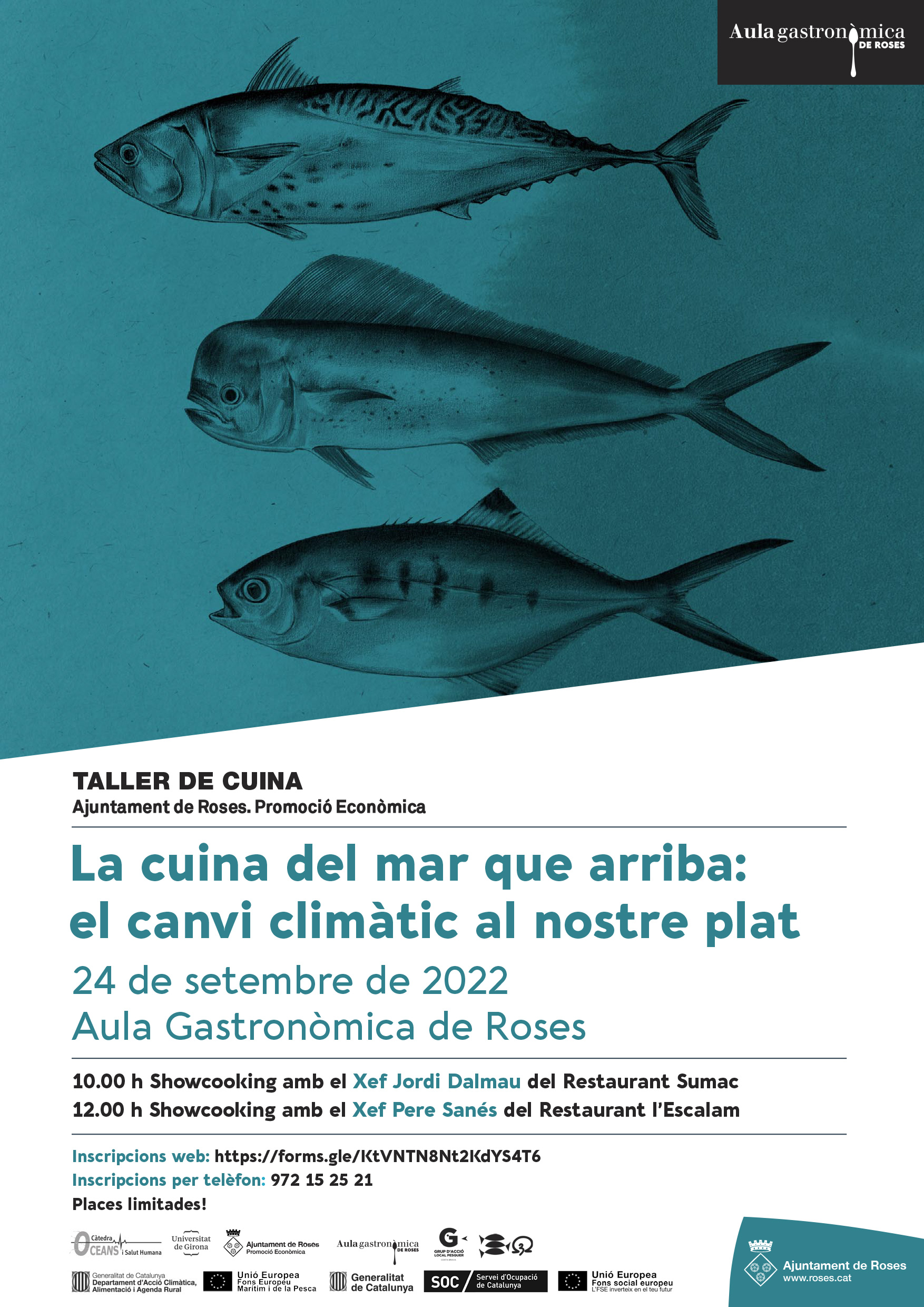 El diumenge 25 de setembre, la Càtedra Oceans i Salut Humana organitza la jornada IV Jornada Científica: Mar, Salut, Ciència i Societat. S’iniciarà al matí amb una sortida en vaixell pel Parc Natural del Cap de Creus per a professionals sanitaris i persones amb Alzheimer. A la tarda, de 17 a 20 h, el Teatre Municipal de Roses acollirà la presentació dels dos projectes en què treballa actualment la Càtedra Oceans: PESCA SOS- Pesca artesanal sostenible a Cap de Creus i Golf de Roses (cofinançat pel Fons Europeu Marítim i de la Pesca- FEMP); i GALP COSTA BRAVA-TERMÒFILES, amb la valorització de les espècies d’interès pesquer que estan incrementant pel canvi climàtic a través del seu consum saludable i una pesca sostenible. Durant l’acte es presentarà el receptari “La cuina del mar que arriba: el canvi climàtic al nostre plat”. Projecte cofinançat pel Fons Europeu Marítim i de la Pesca (FEMP). Aquesta jornada de tarda és gratuïta i oberta a tothom.