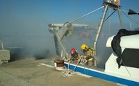 Simulacre d'incendi en una embarcació al port pesquer