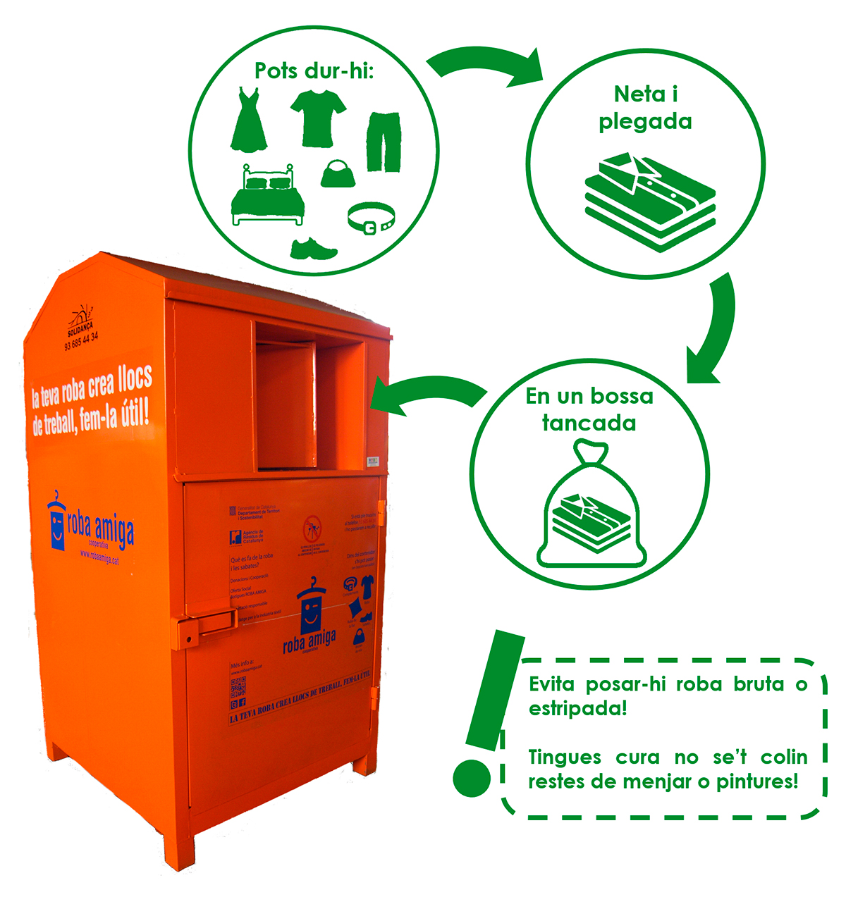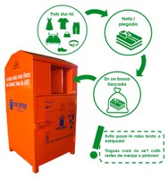 La roba s'ha de rentar, plegar i dipositar-la en una bossa tancada dins dels contenidors.
