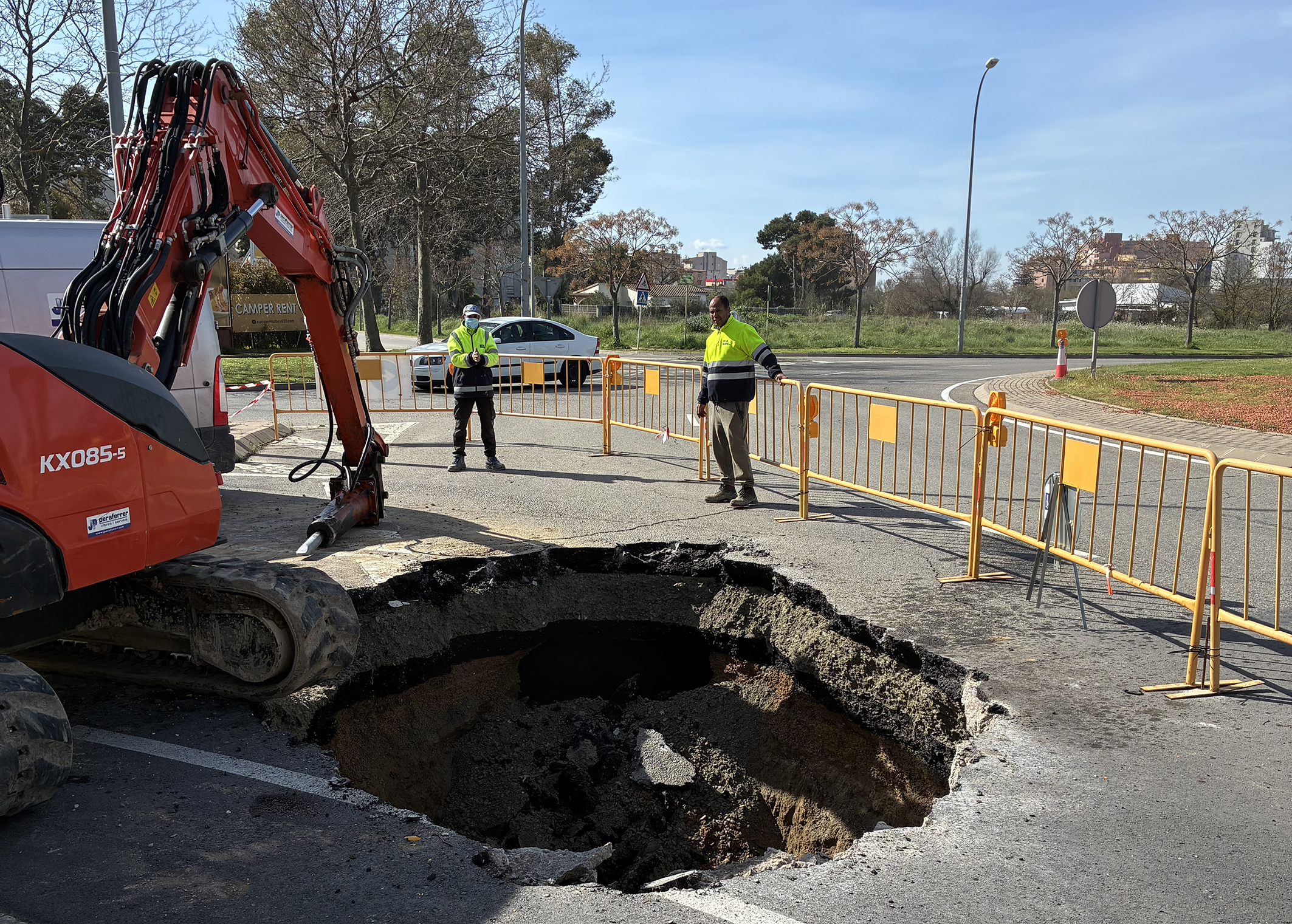 Tall de trànsit de la C-260 en direcció sortida de Roses, a causa d’un esvoranc a la calçada