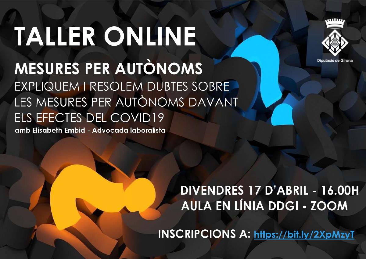 La Diputació de Girona organitza dos tallers en línia adreçats a empreses i autònoms on es resoldran dubtes i s’orientarà sobre vies possibles per ajudar a superar la situació d’excepcionalitat i pal·liar els efectes econòmics de la COVID-19: