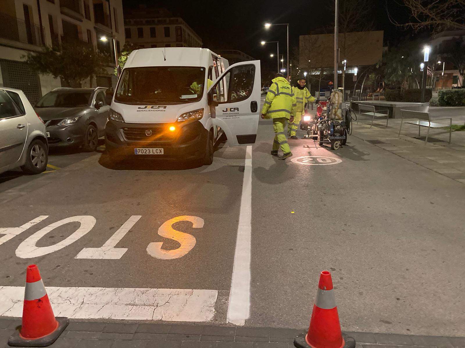 Treballs de repintat de la senyalització vial de diversos carrers de Roses