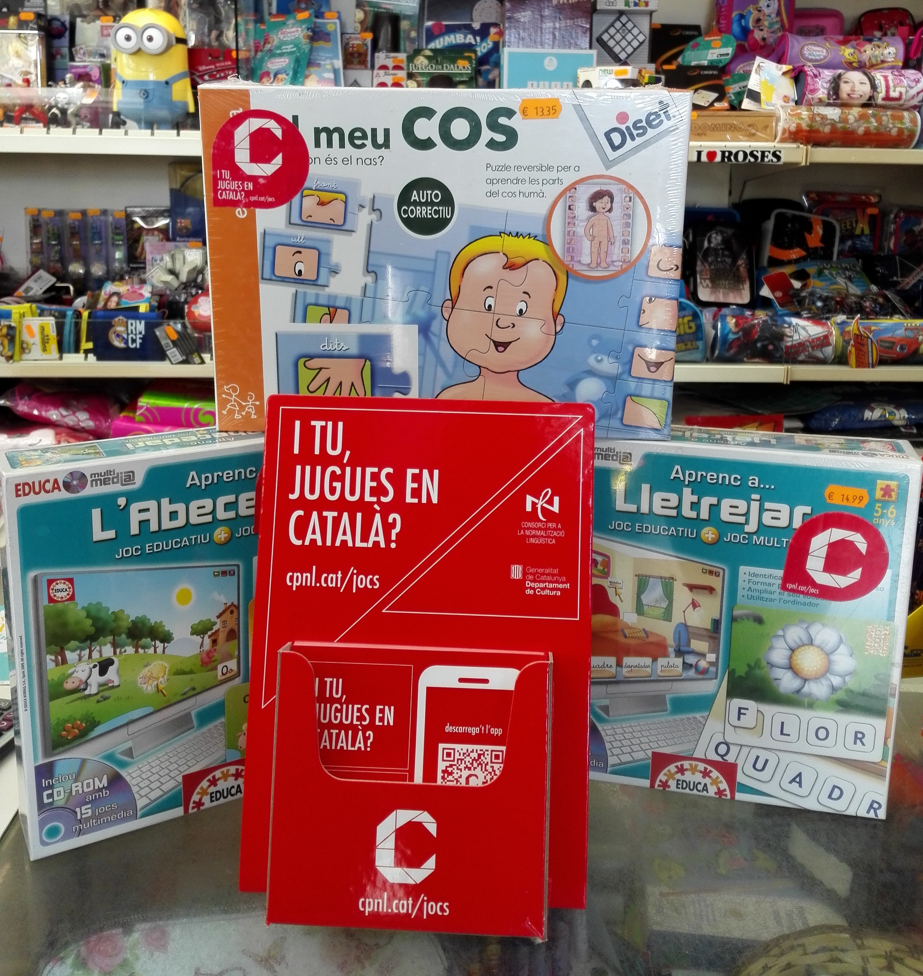 La campanya també disposa de l’app “I tu, jugues en català?”, on es poden trobar els 440 comerços adherits, així com un cercador de jocs per edats i per temes (prop de 750 jocs en català). Els establiments rosincs adherits són:
