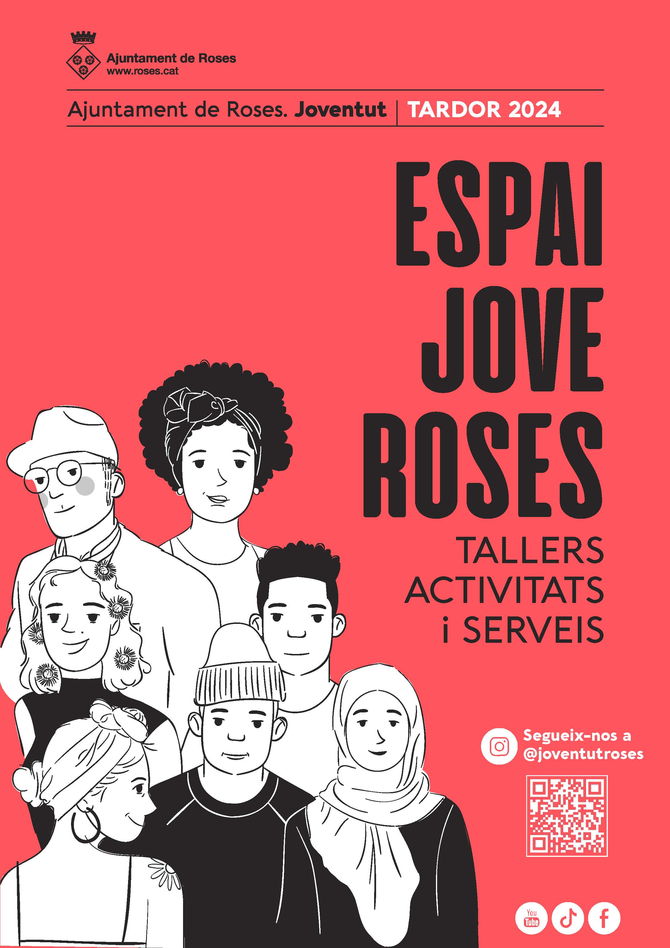 Les inscripcions als tallers (places limitades) es poden realitzar a partir del divendres 20 de setembre a l’Espai Jove Roses: Gran Via Pau Casals, 39 - 45. Tel. 972 150 888. Podeu consultar tota la informació sobre els tallers i serveis de l’Espai Jove a través de Instagram, a @joventutroses.