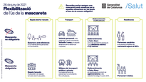 A partir del 26 de juny, i com a conseqüència de la millora dels indicadors epidemiològics i els avenços en la campanya de vacunació, es flexibilitza l’obligatorietat de la mascareta en espais públics a l’aire lliure.